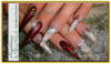 nach rot und teilweise nach blau die Farbe, die roten Nägel sind mit rotem