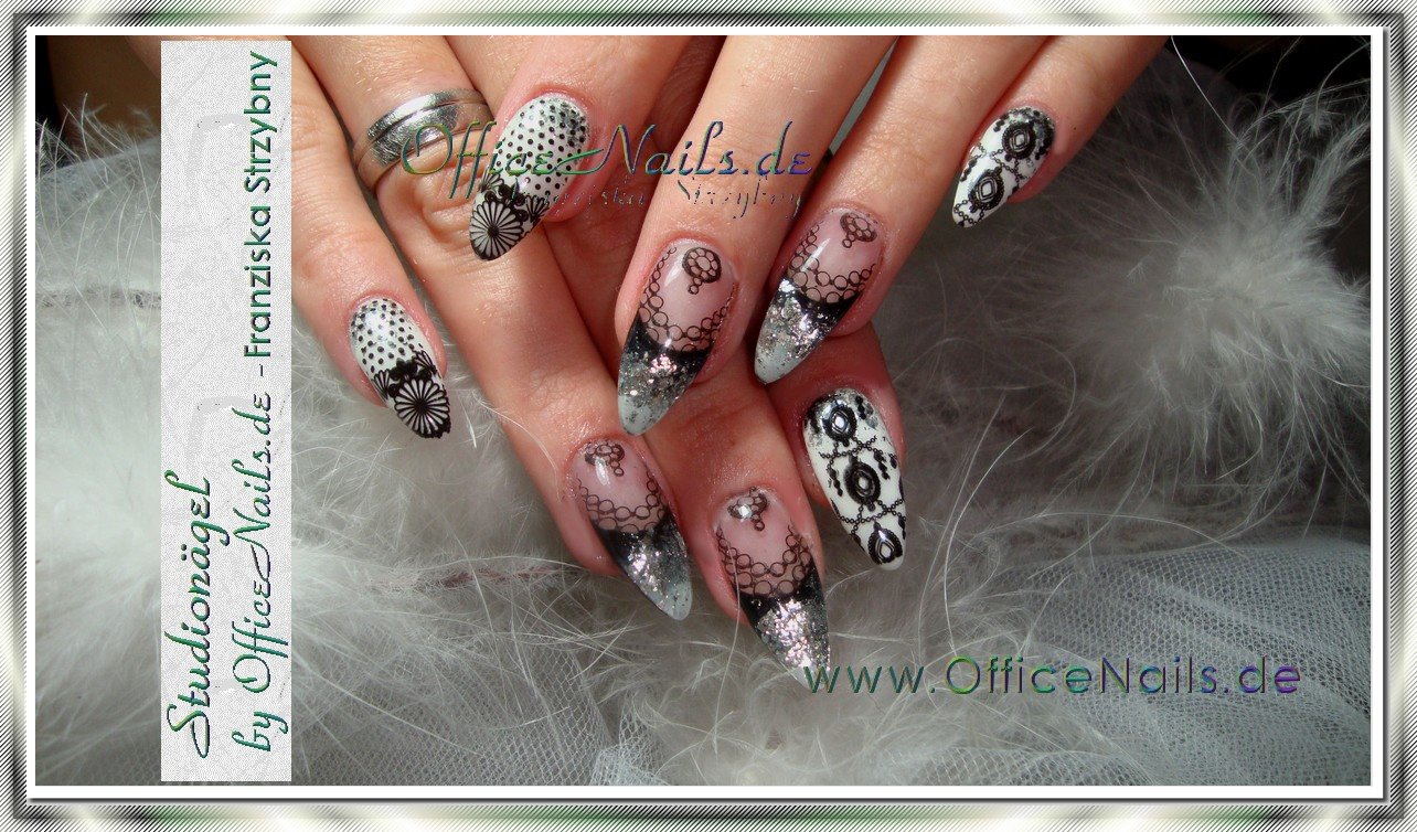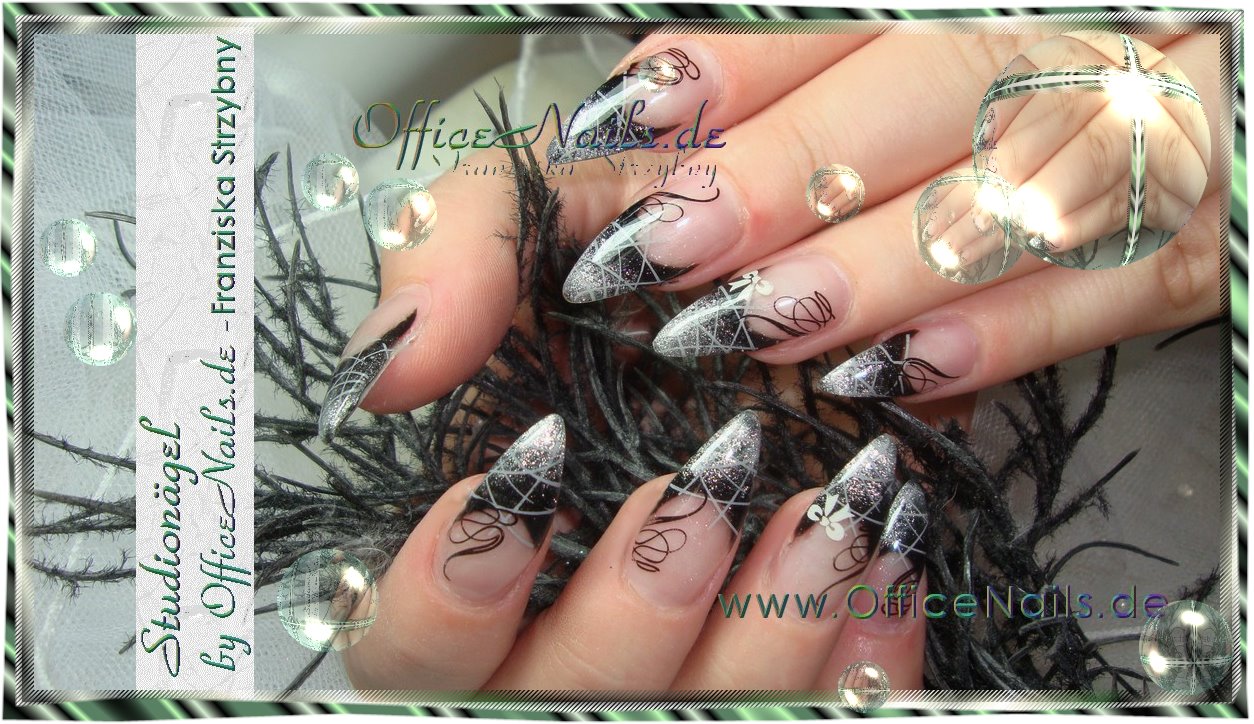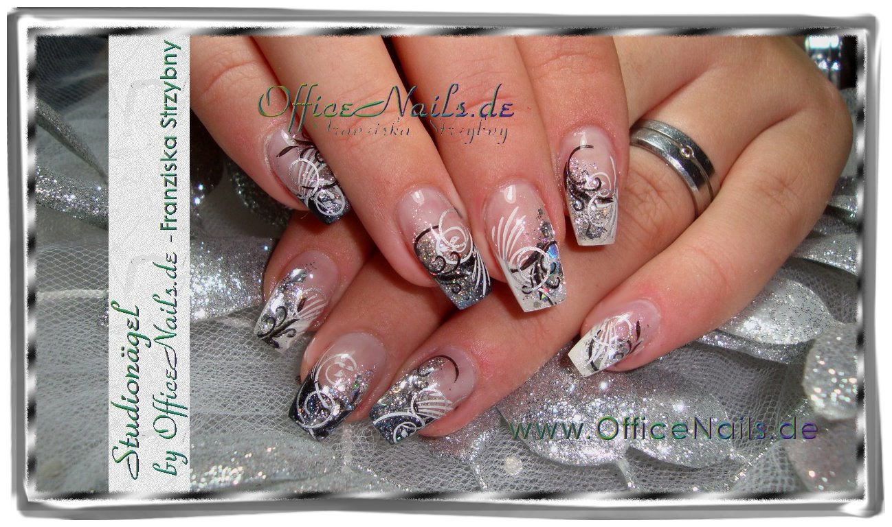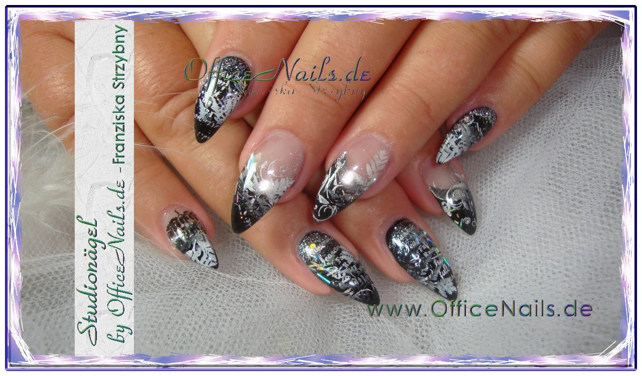 hier schwarzes French verlaufend zu silbernen Spitzen mit allerlei