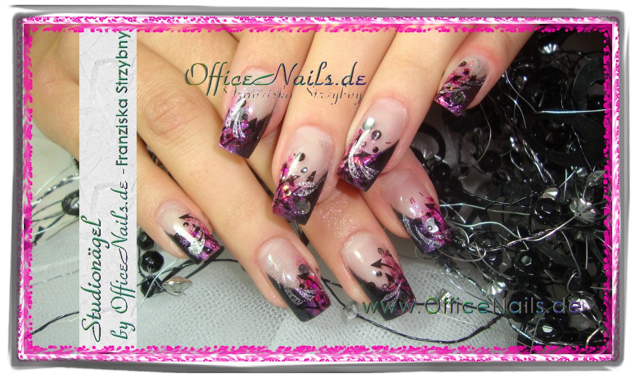 Untergrund hier mit leuchtendem Lila kombiniert. Mit Schnörkel und